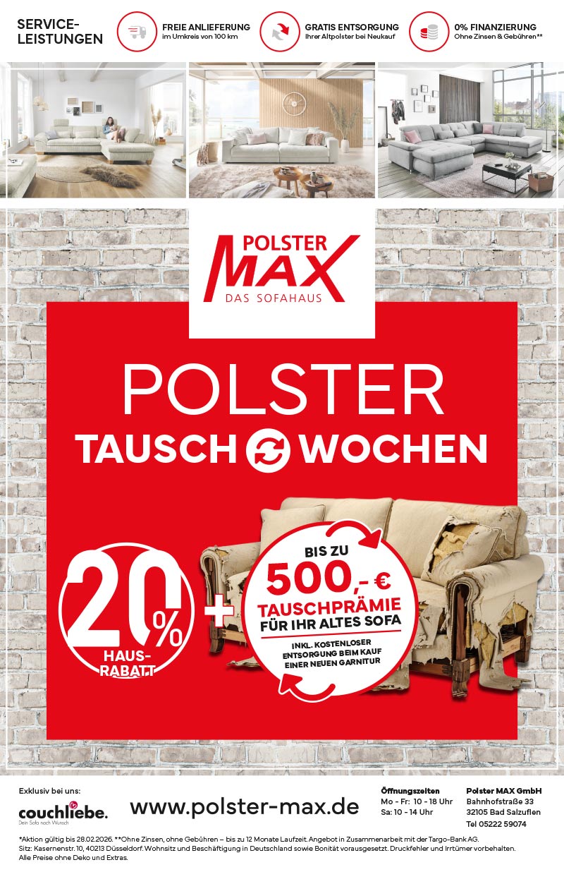 Dafür steht die besondere Polster MAX-Kollektion. Unser Beruf ist unsere Berufung. Wir lieben Polstermöbel. Sie sind aus unserer Sicht ein ganz wichtiger Aspekt der häuslichen Wohnkultur.